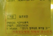 4:00 빈크리스틴 투여 완료. 식염수로 링거 세척.